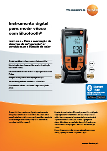 testo 552 é um vacuómetro digital para sistemas de refrigeração e bombas de calor. Mede até a mais baixa pressão absoluta e indica com grande percisão o estado de desumidificação do sistema (remoção de substâncias estranhas, incl. óleo e gases).