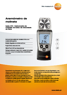 O testo 410-2 foi concebido para a medição da velocidade, temperatura e humidade ambiente. O sensor de humidade patenteado pela Testo garante resultados de medição fiáveis. Graças à medição integrada com a sonda de molinete de 40 mm, adequa-se idealmente para verificações locais rápidas em ventilações de ar. Um cálculo do valor médio por tempo é possível. O instrumento de medição é pequeno e é fácil de manusear..